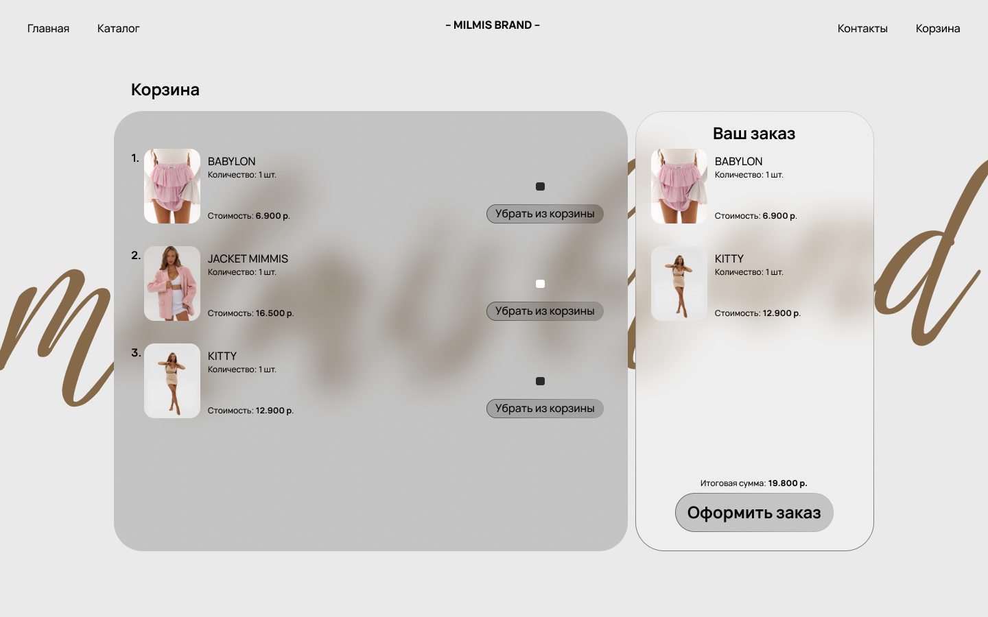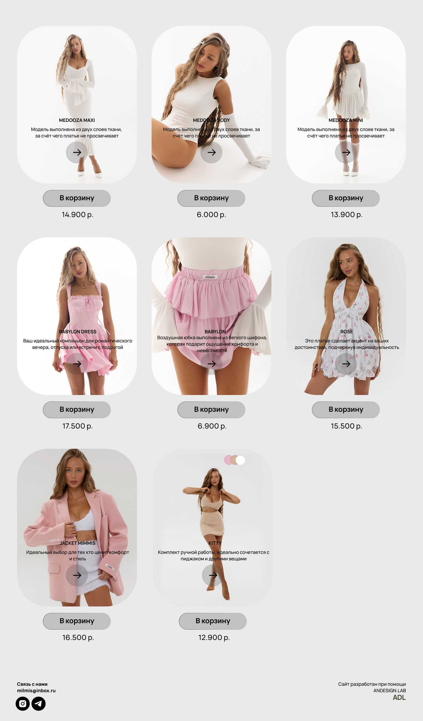 Website design for a women's clothing store. We created the homepage, catalog, shopping cart, and checkout. Дизайн для сайта магазина женской одежды. Выполнена главная страница, каталог, корзина и оплата.